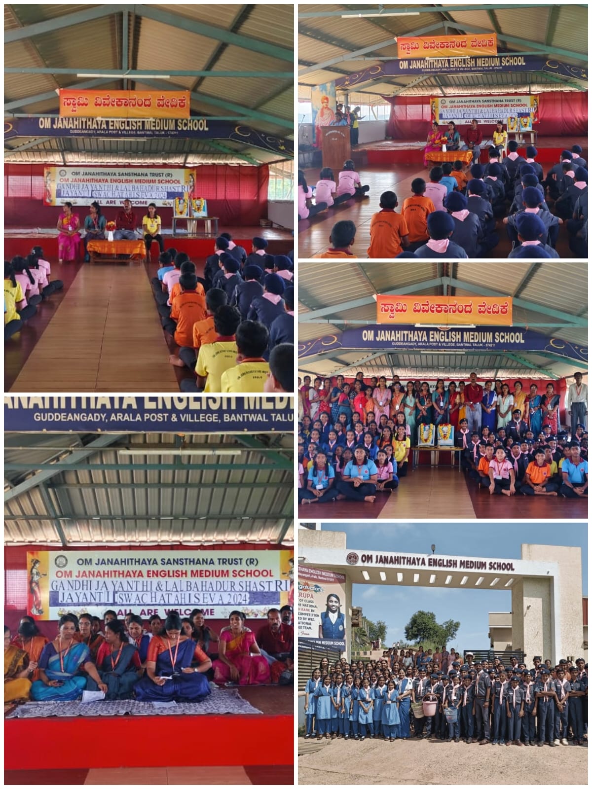 Om Janhithaya English Medium School Arala celebrated Gandhi Jayanthi, Lal Bahudur Shastri Jayanthi and Swachhata Hi Seva program here. Headmaster Mahesh Shetty, coordinators Mamata B.V and Mamata N, school leader Pranvi Alva were the chief guests. Dikshith of class 7 gave a speech on the importance of Gandhi Jayanthi and Hriddhi Shetty of class 9 on cleanliness. School leader Pranvi P Alva welcomed the guests. 10th class student Thanvi thanked. Chaya managed the programme. Cleanliness by scout guide students and pantheism prayer by all teachers was held.