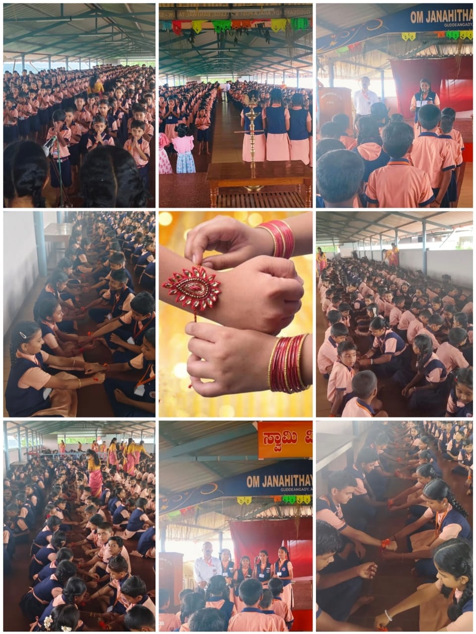 Om Janahithaya English Medium School, Arala where Rakshabandhan was celebrated on 19-08-2024 Monday. School Headmaster Mahesh Shetty and teachers were present. The students celebrated by tying raksha to the students. Dhruti Melanta of class 10 told about the importance of the ritual. Lithika of class 9 thanked the gatherings and Sindhu of class 9 narrated the program. Teachers Nayana and Reshma assisted.