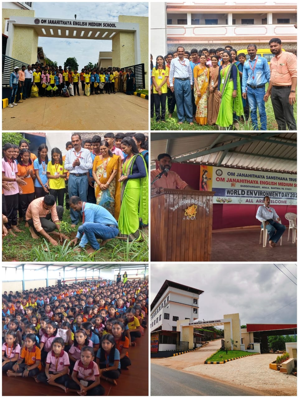 Om Janhithaya English Medium School Arala celebrated World Environment Day in the school campus. School Correspondent Ranjan Kumar Shetty as the chief guest preached environmental protection to be the duty of all of us and to inculcate it in the student village itself. Head teacher Mahesh Shetty, all teachers and students were present. Teacher Vinuta gave a lecture on the significance of the day. The teacher Sangeetha thanked and narrated the program. Students undertook environmental cleanliness around the school by planting saplings and making the environment litter-free.